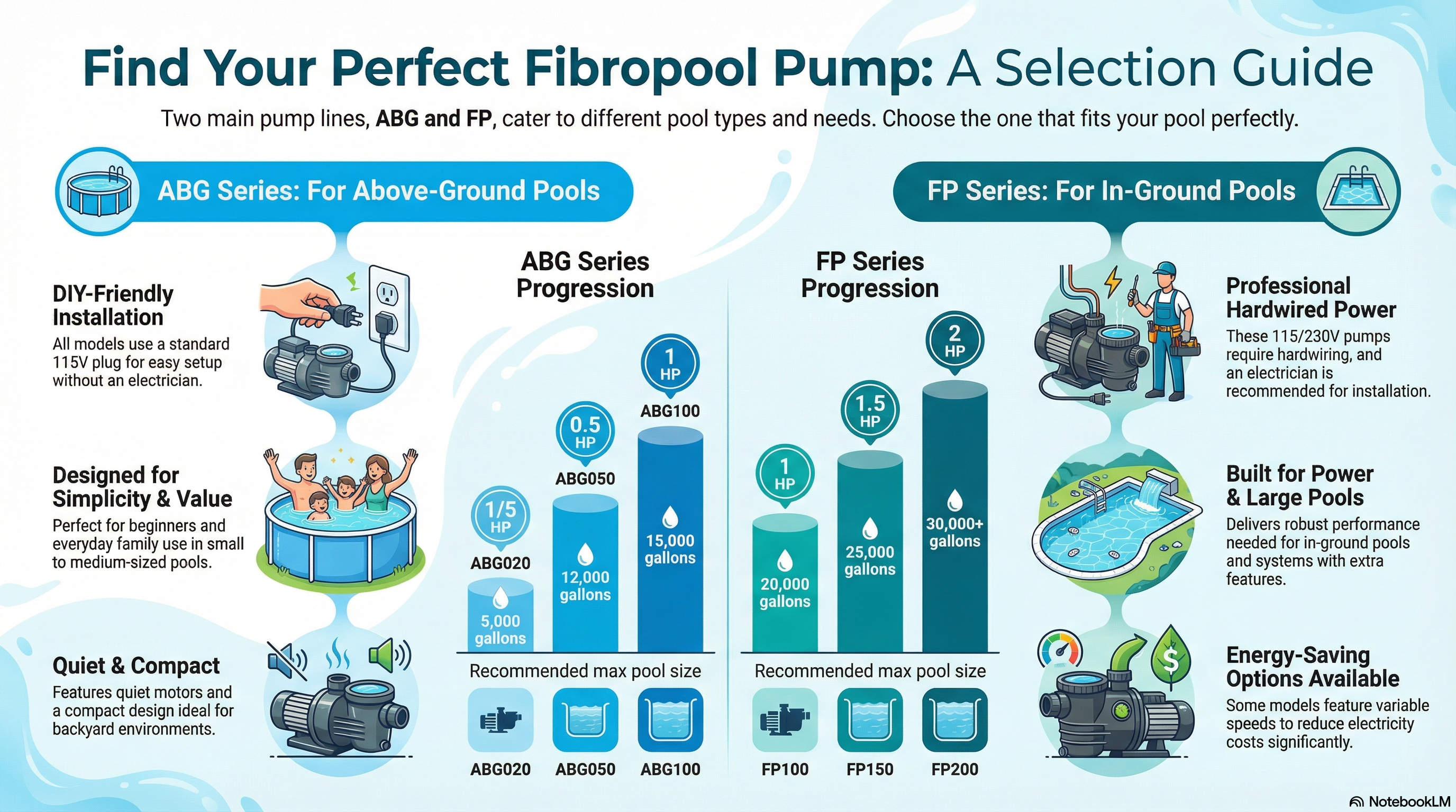 Pro Tip: For any of these models, consider upgrading to a FibroPool Variable-Speed pump — they save 50–80% on energy and automatically adjust to your exact needs. |